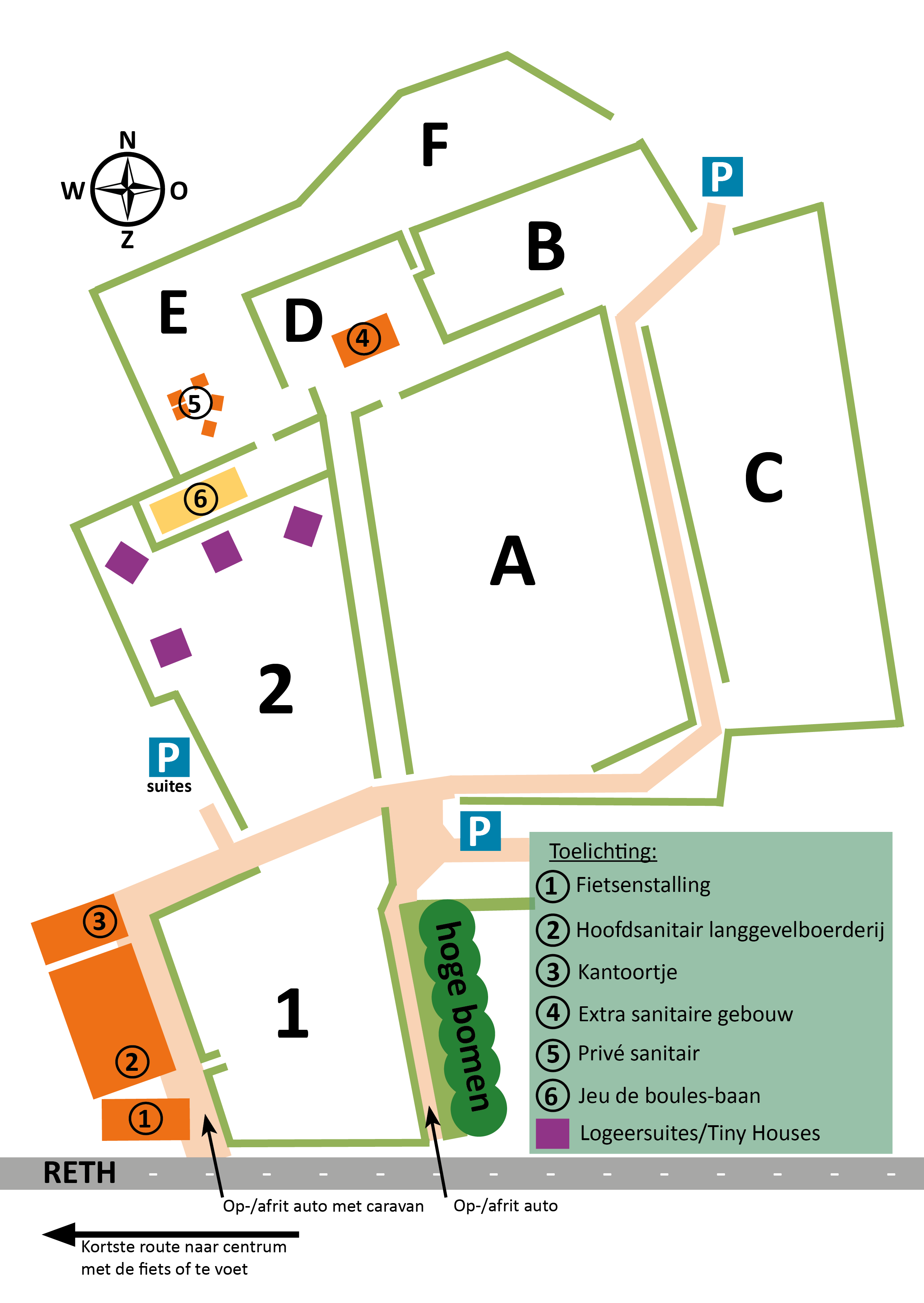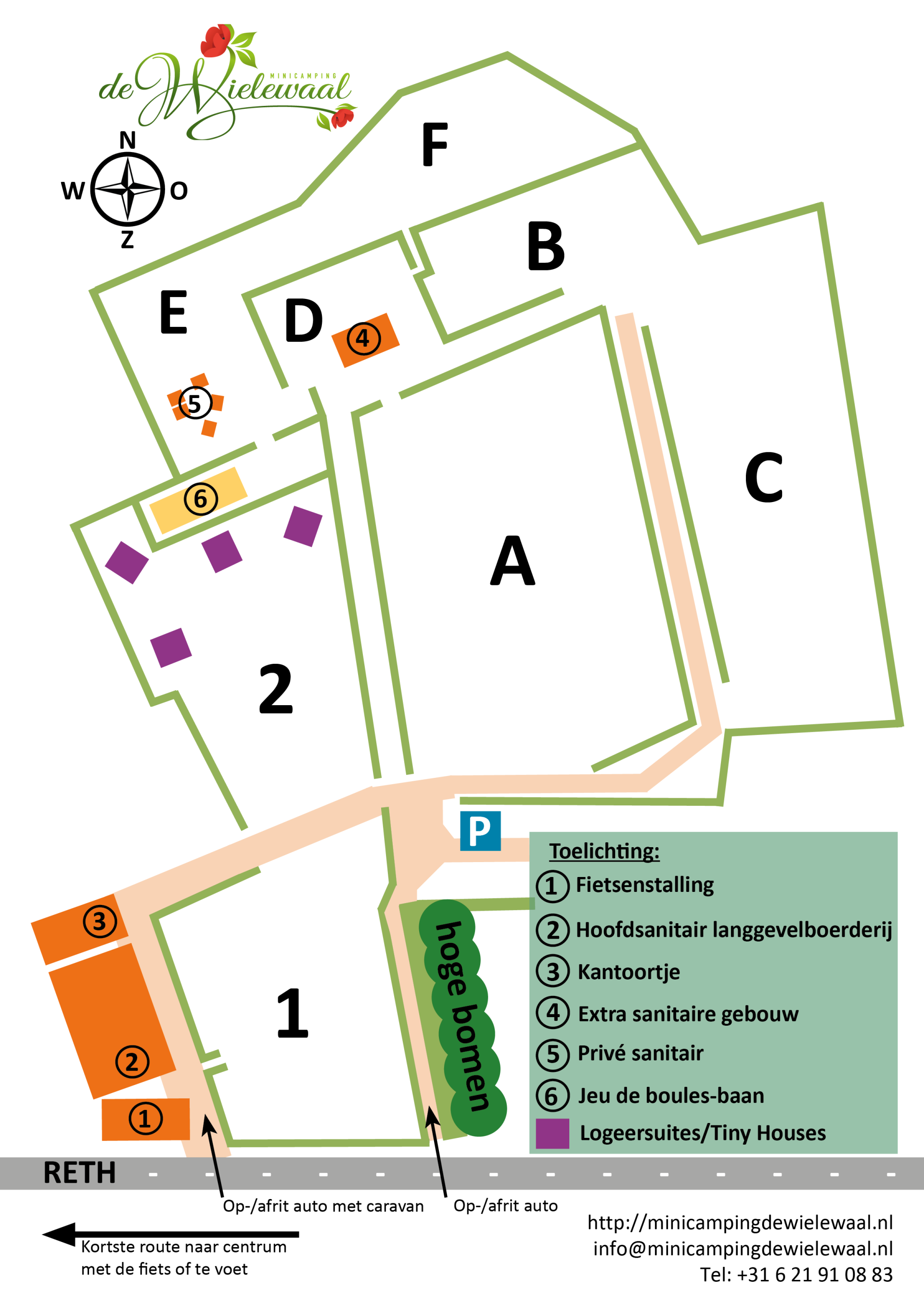 We maken geen gebruik van plaatsnummers. Hier vindt u wel een plattegrond van de veldjes, de windrichting, de sanitaire voorzieningen, etc.